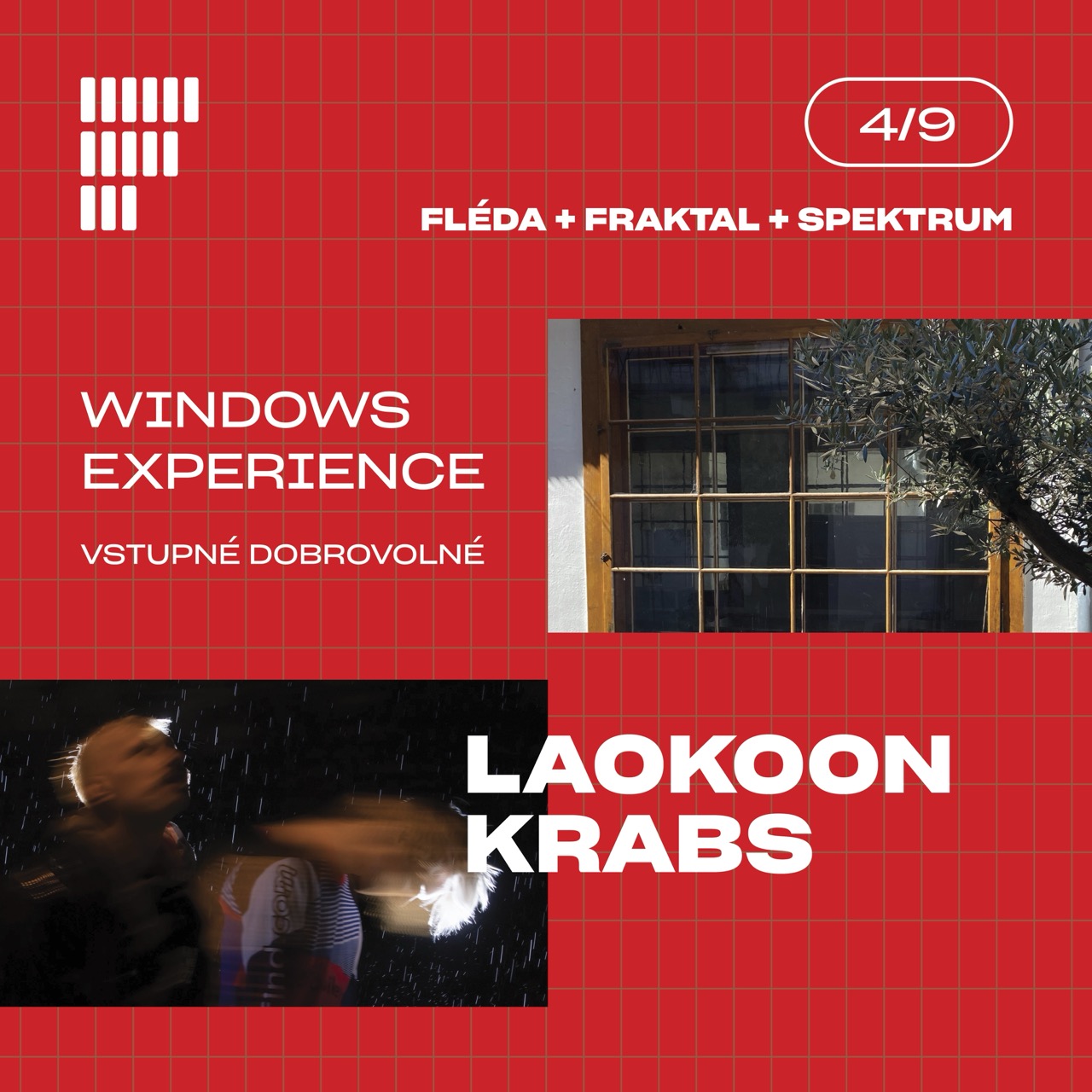 Spolupráce Flédy, Fraktalu a baru Spektrum naservíruje nový koncertní zážitek. Experimentální rapové duo LAOKOON a elektronický mág KRABS budou hrát na pódiu v otevřených oknech klubu. Publikum pod nimi se může těšit na nevšední akci pod širým nebem. Atmosféra, kterou jinde nedostanete!