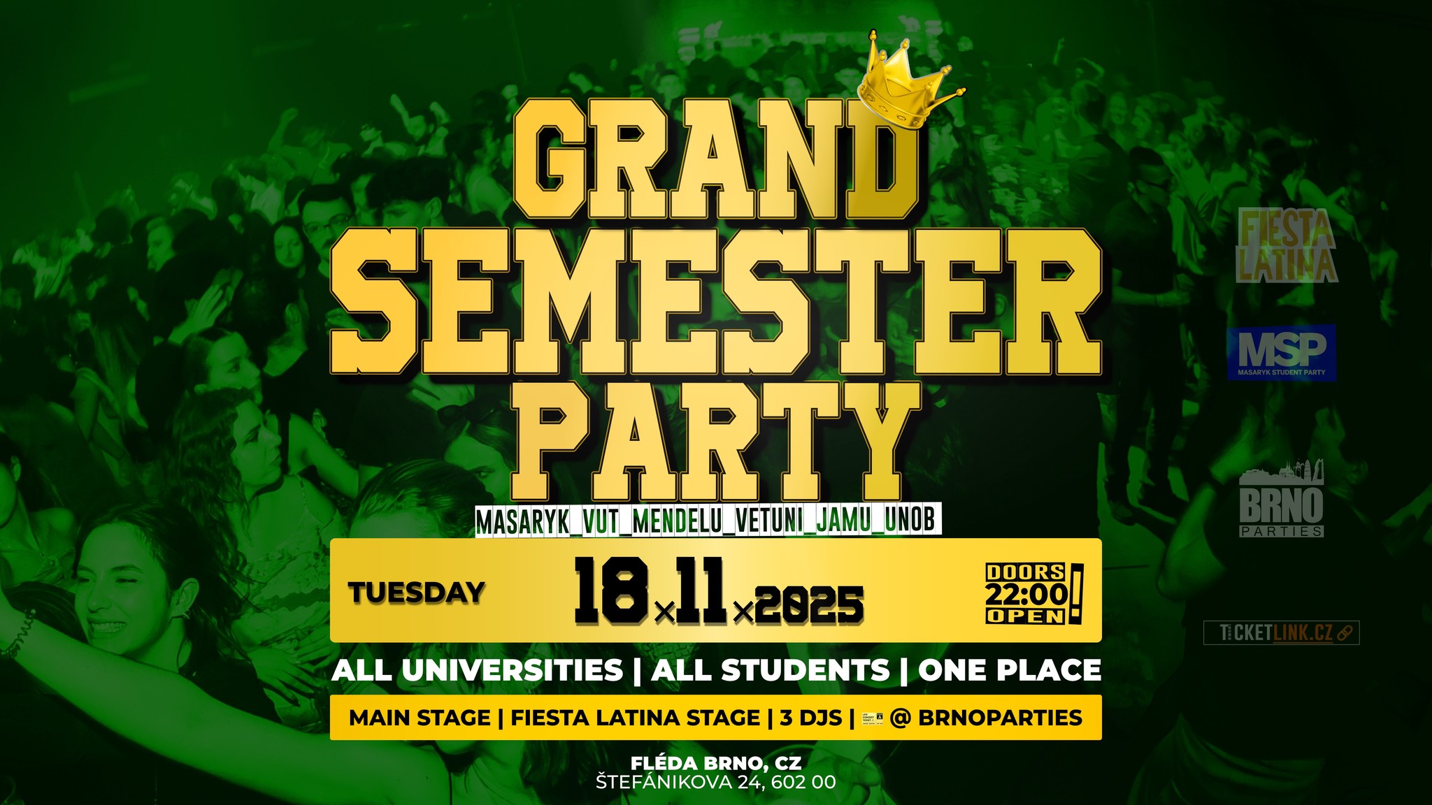 𝗣ř𝗶𝗱𝗲𝗷 𝘀𝗲 𝗱𝗼 𝗷𝗲𝗱𝗻é 𝘇 𝟯 𝗵𝗹𝗮𝘃𝗻í𝗰𝗵 𝘂𝗻𝗶𝘃𝗲𝗿𝘇𝗶𝘁𝗻í𝗰𝗵 𝘀𝗼𝘂𝘁ěží, kde vítězové obdrží hodnotné ceny. Více informací na Instagramu @grandsemesterparty